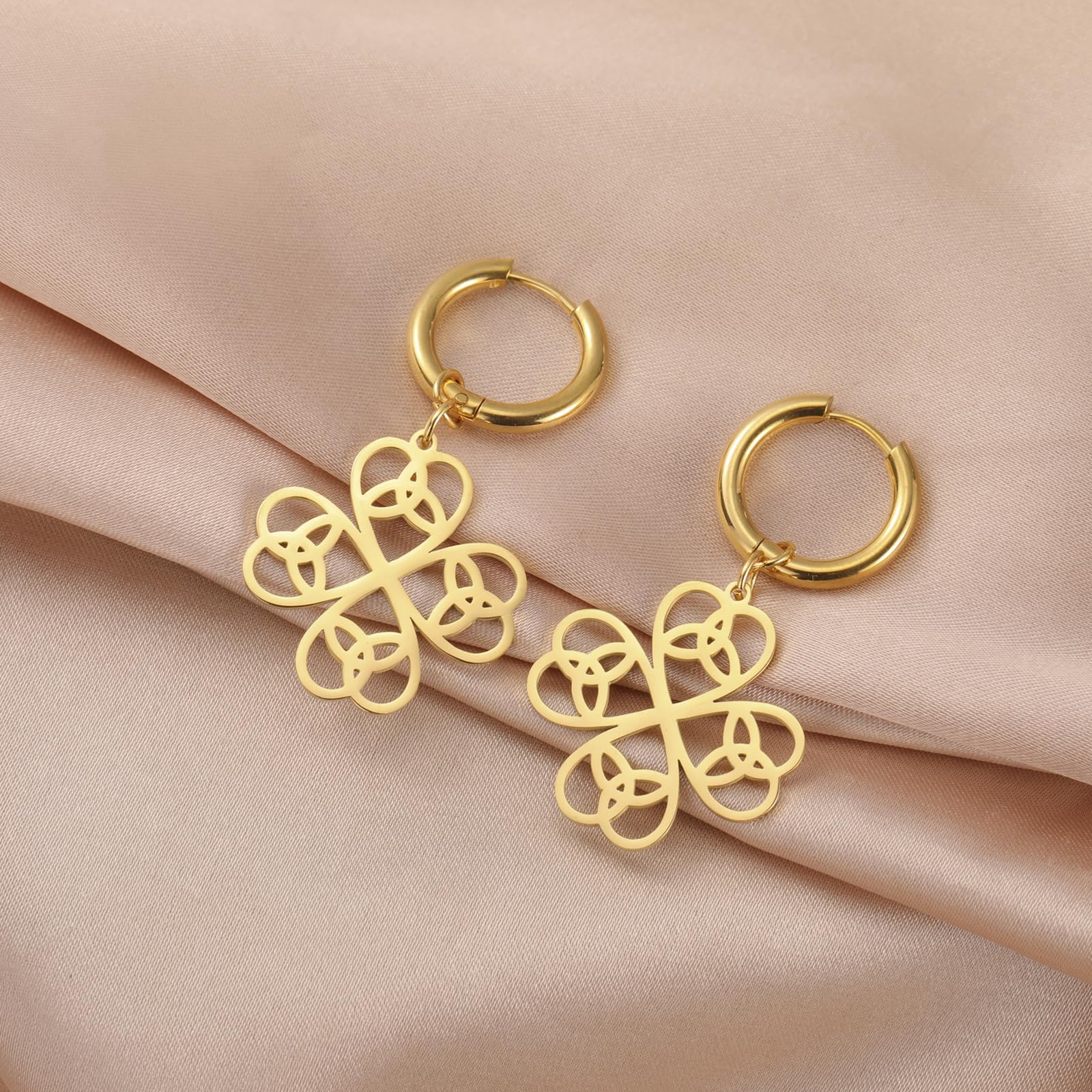 Clover Celtic Knot Earrings for Women Four Leaf Clover Dangle Earrings Stainless Steel Lucky Clover Hoop Earrings Trendy Jewelry Amulet