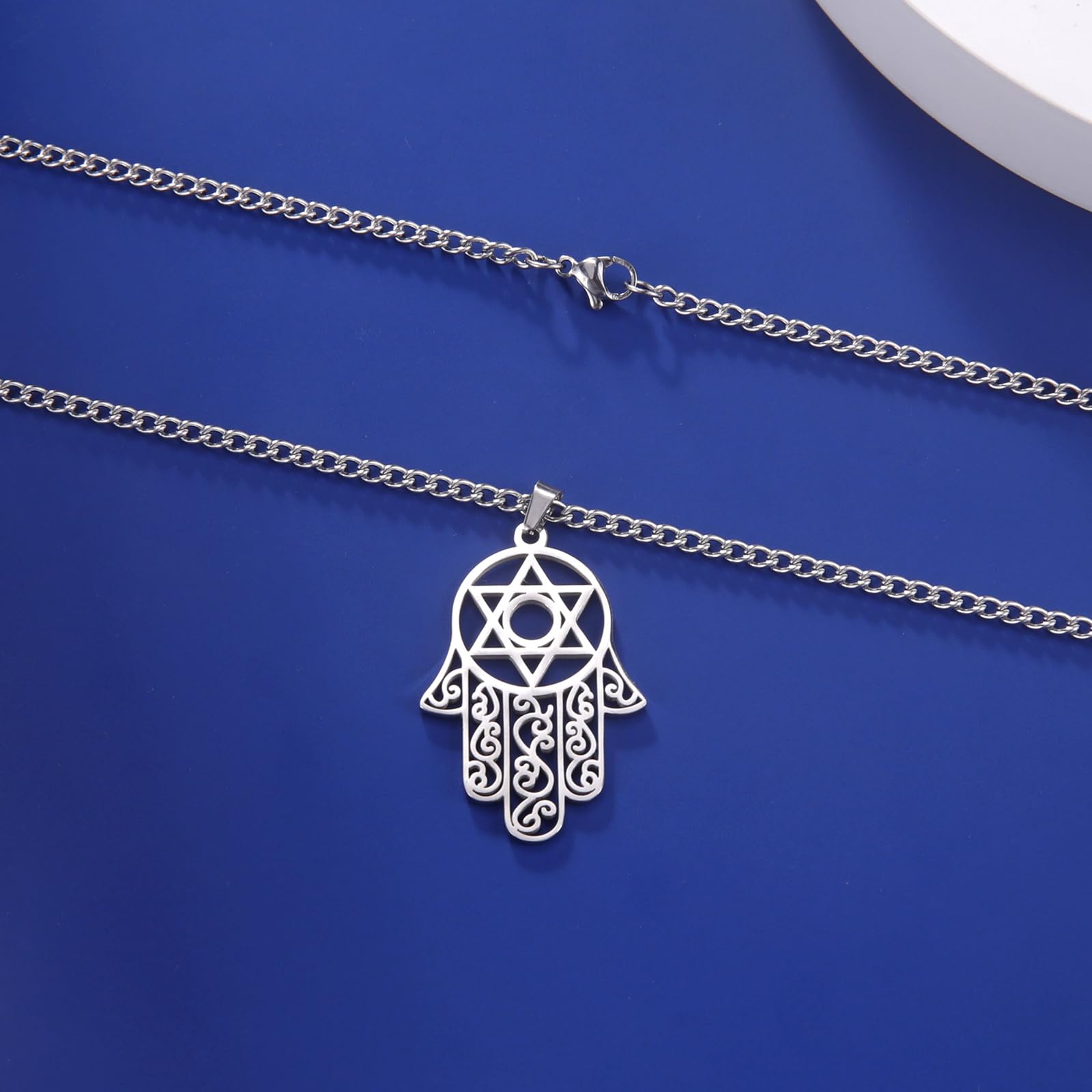 Hexagram Hamsa Hand Pendants Necklace for Men Magen David Necklace Hamsa Hand of Fatima Necklace Islam Arab Jewish Star Palm Shaped Jewelry
