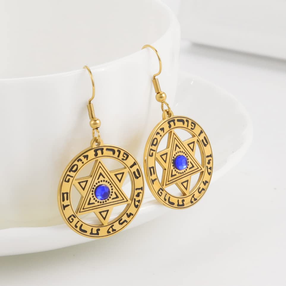 Stainless Steel Hanukkah Star of David Dangle Earrings Retro Hebrew Star Circle Charm Jewelry for Women