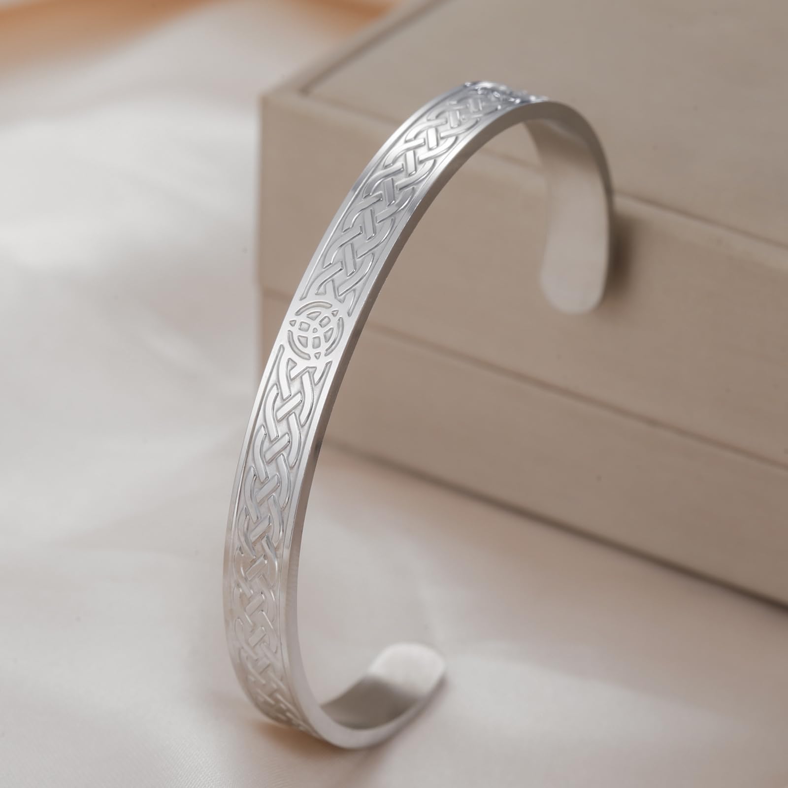 - Material and Adjustable: Made from premium stainless steel, sturdy and comfort, lightweight, stylish, keep long beauty. This Celtic knot bracelet with flexible cuff-style bangle design, make a comfortable and customizable fit for wrist size;