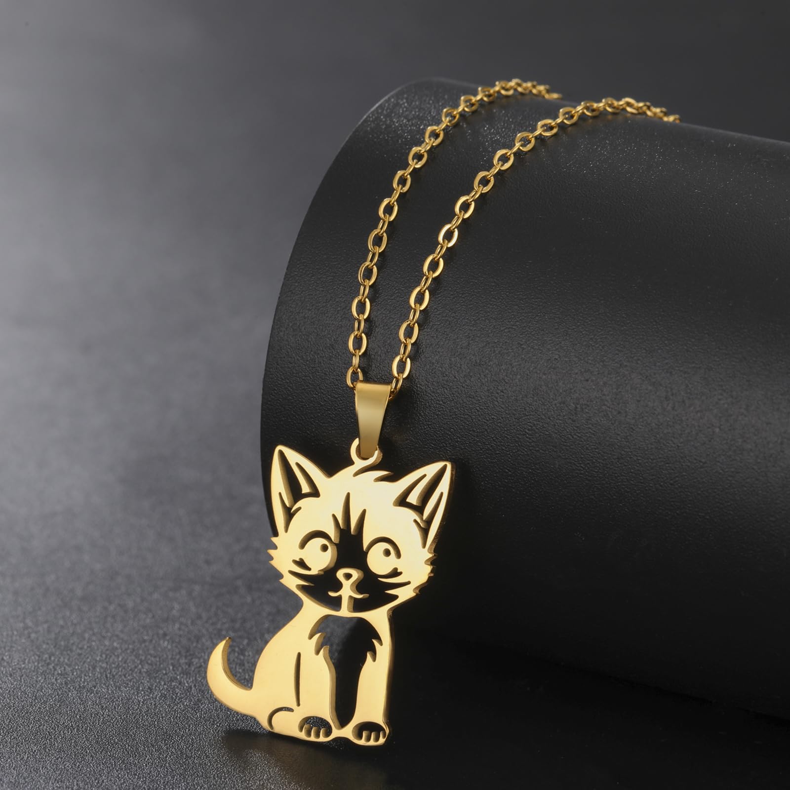 VASSAGO Cute Cat Necklace for Women Men Stainless Steel Kitty Pendant Necklace Kitten Jewelry Gifts for Cat Lover Friends