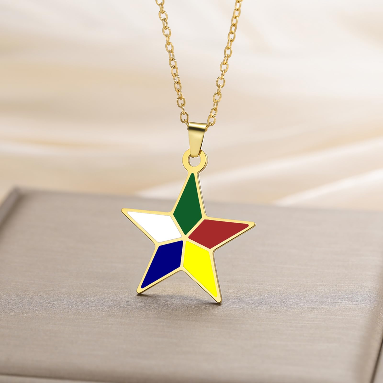- Druze Star Design: The five-pointed Druze Star necklace embodies vibrant 5 colors symbolism—each color represents core Druzism principles: green (the mind/al-akl), red (the soul/an-nafs), yellow (divine word/al-kalima), blue (willpower/as-sabiq), and white (manifestation/al-tali). It’s a wearable tribute to Druze beliefs and faith;