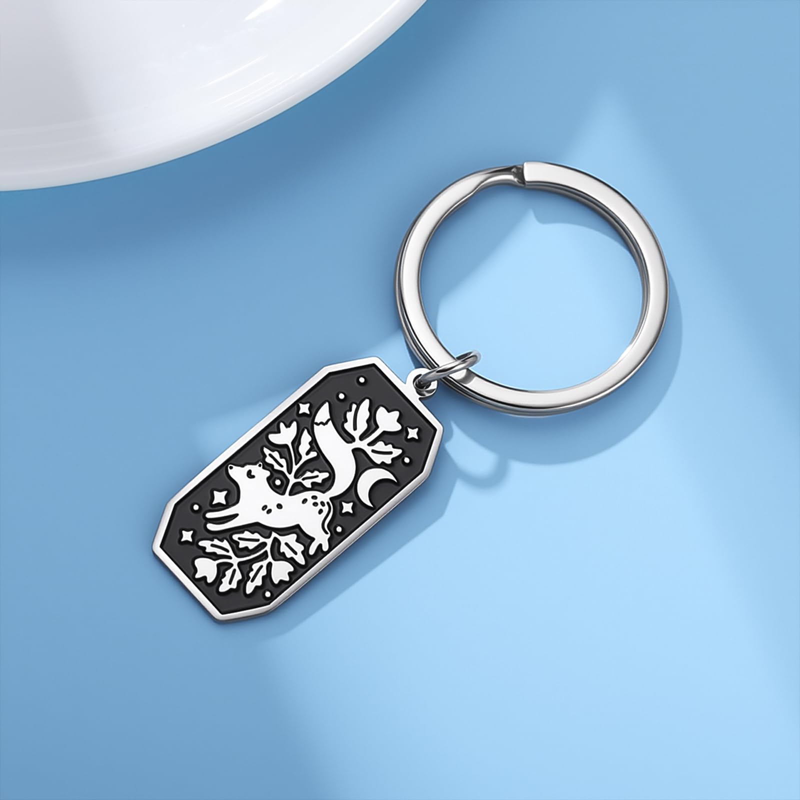 - High-Quality Metal: Crafted from premium stainless steel, this fox keyring is sturdy and resistant to tarnish. The precise engraving ensures the fox details are clearly defined, making it a durable animal keyring;