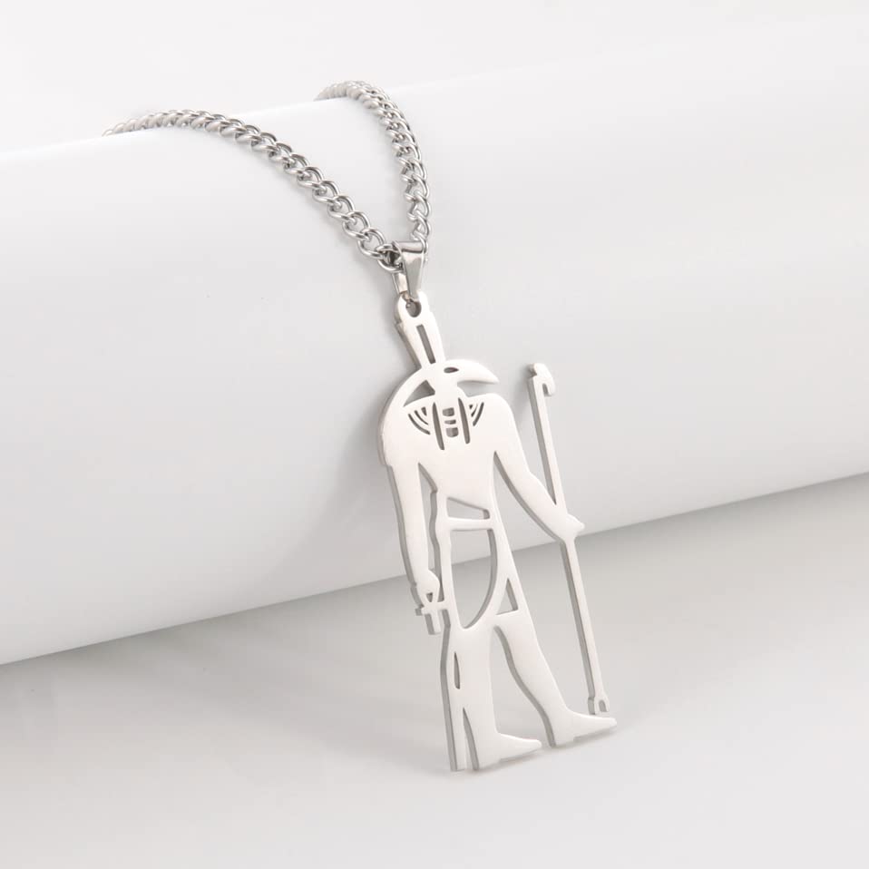 VASSAGO Set God Pendent Necklace Stainless Steel God of Desert and Storm Ancient Egyptian Jewelry Gift for Men Women (Silver)