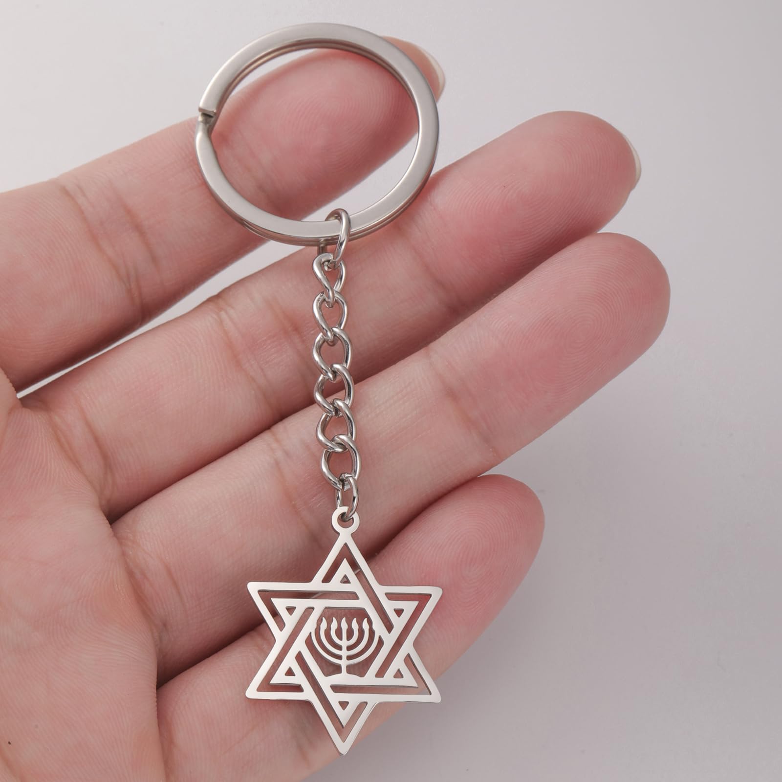 - Unique Design: This Star of David Keychain for both men and women combines the iconic Jewish Star with a menorah design, making it a meaningful piece of Israel religious jewelry;
