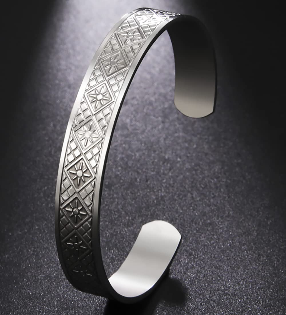 VASSAGO Viking Stainless Steel Bracelet, Vintage Irish Loop Diamond Sun Square Texture Totem Antique Silver Black Bangle Cuff Bracelet Gifts for Men