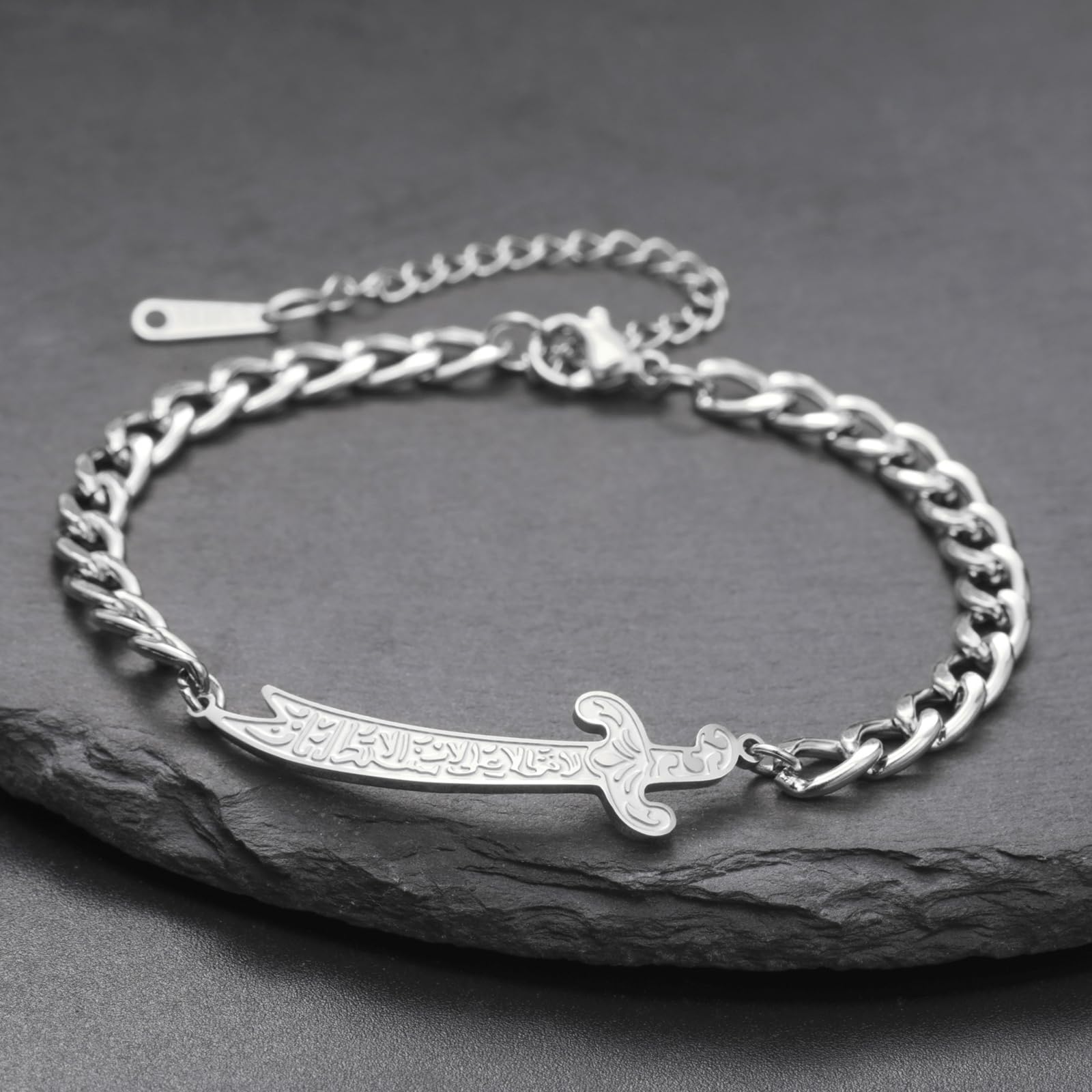 - Iconic Zulfiqar Design: Our Zulfiqar Bracelet showcases the iconic sword pendant, symbolizing piety, justice and strength. The engraving in Arabic adds a touch of authenticity and cultural significance;